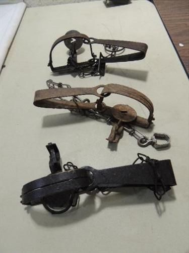 LOT 3 VINTAGE ONEIDA VICTOR STEEL LIVE ANIMAL TRAPS. AS SHOWN. VIEWPICTURE FOR DETAIL.