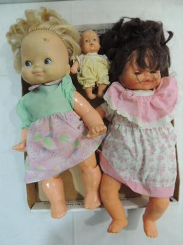 LOT 3 VINTAGE PLASTIC & VINYL DOLLS. MAKERS: UNEEDA DOLL, NO MARK & 1974 MATTEL. AS SHOWN. VIEW PICTURE FOR DETAIL.