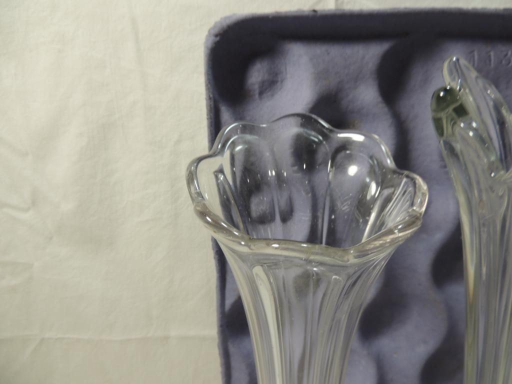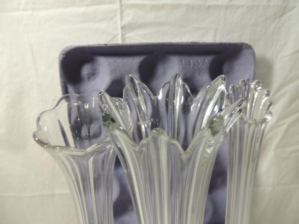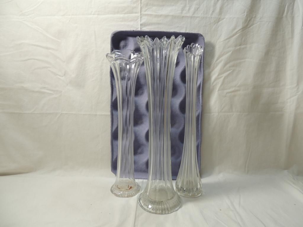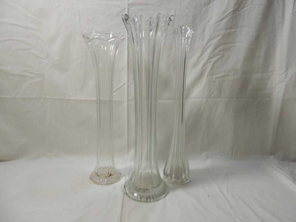 CLEAR GLASS APPROX 18" TALL DIFFERENT STYLES. AS SHOWN. SEE PHOTO FOR MORE DETAILS.