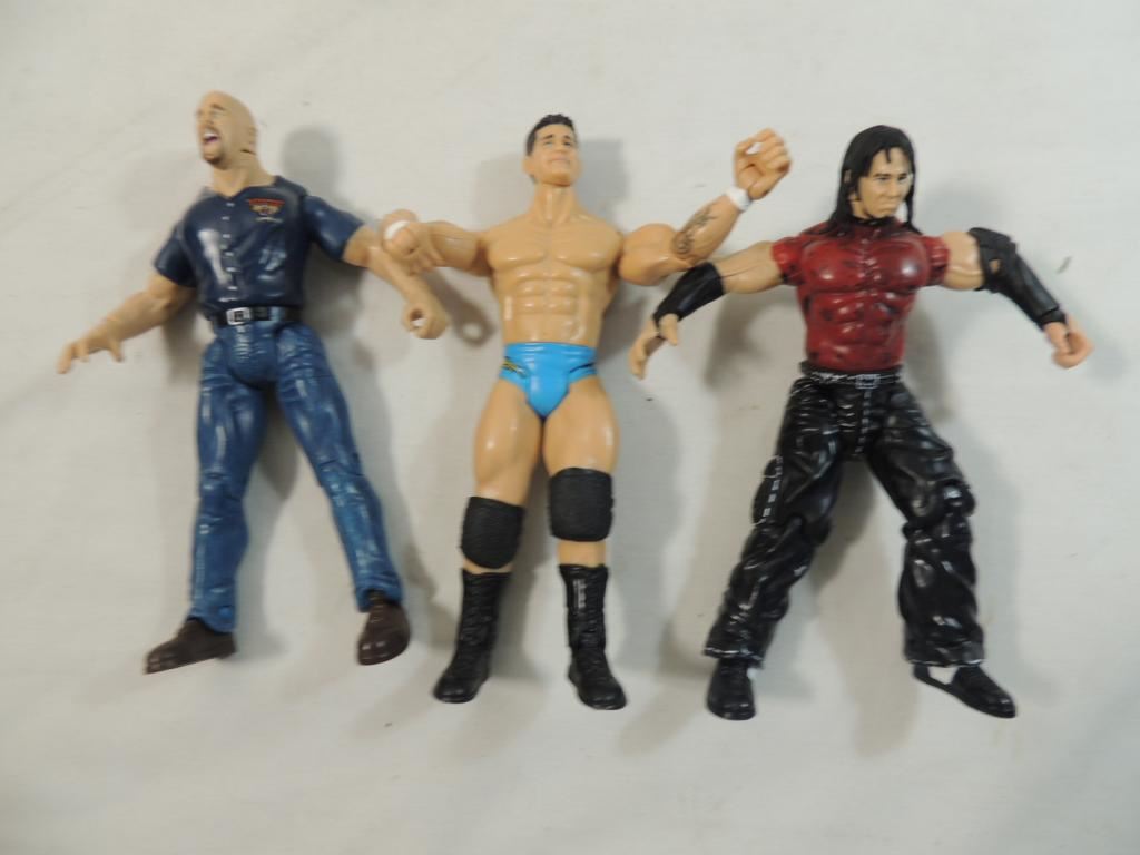 LOT 3 ASSORTED WWE/ WWF ACTION FIGURES WRESTLING FIGURES AS SHOWN SEE PHOTO FOR MORE DETAILS.