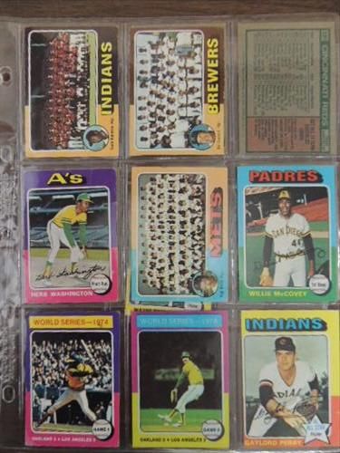 LOT 30 1975 TOPPS BASEBALL PLAYER CARDS: MORGAN, JOHN, MCCOVEY, TEAM CARDS. AS SHOWN. VIEW PICTURE FOR DETAIL.