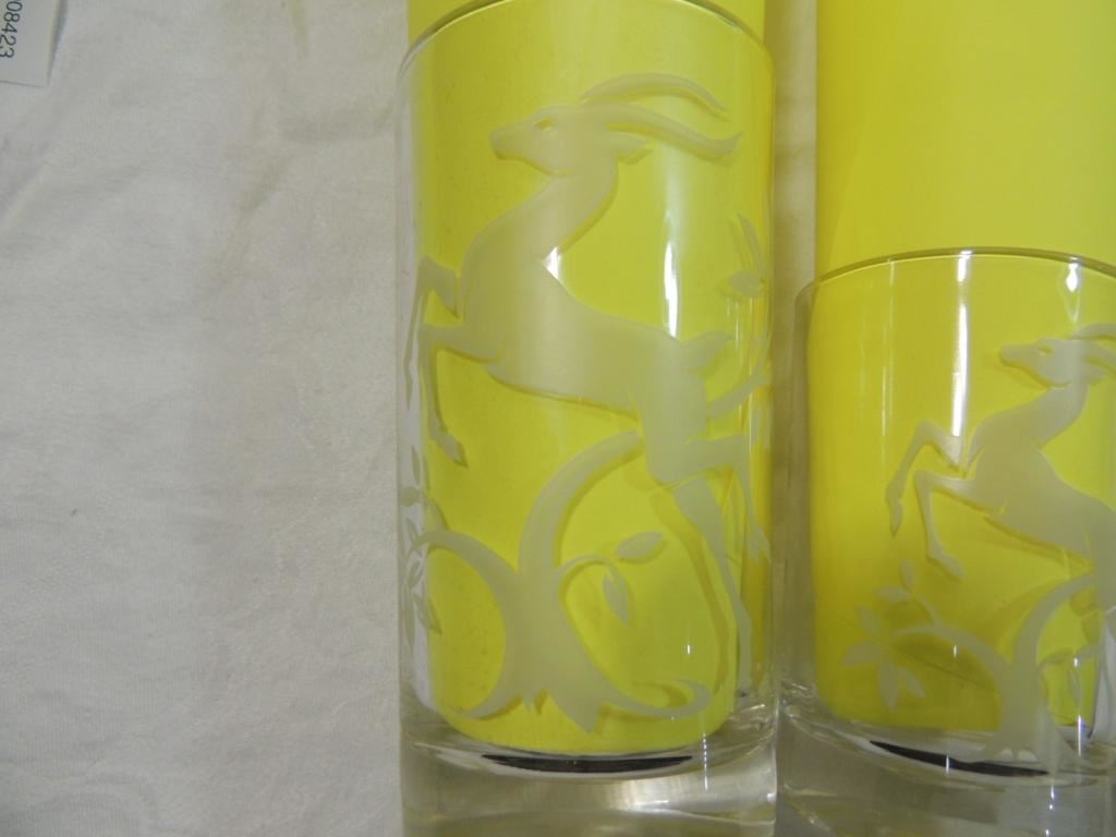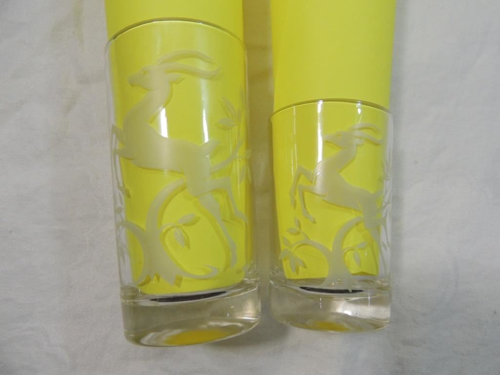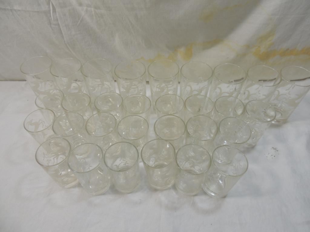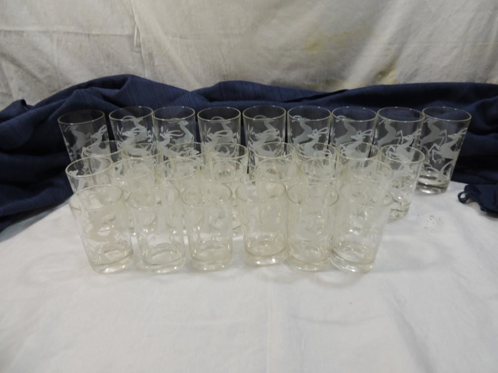 VINTAGE FEDERAL GAZELLE REINDEER DRINKING GLASS FROSTED ETCHED SMALL AND LARGER GLASSES. DRINKING GLASSES AS SHOWN SEE PHOTO FOR MORE DETAILS.