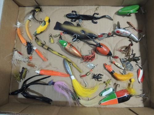 LOT 30 VINTAGE VARIOUS STYLE FISHING LURES. AS SHOWN. VIEW PICTURE FOR DETAIL.