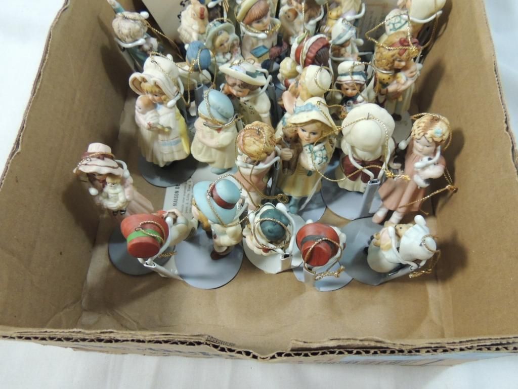 LOT 31 1980's MINIATURE PORCELAIN DOLLS WITH STANDS ORNAMETS AS SHOWN. SEE PHOTO FOR MORE DETAILS