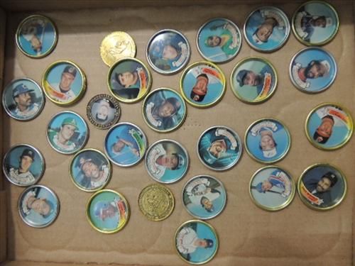LOT 31 1989 TOPPS METAL BASEBALL PLAYER DISCS. AS SHOWN. VIEW PICTURE FOR DETAIL.