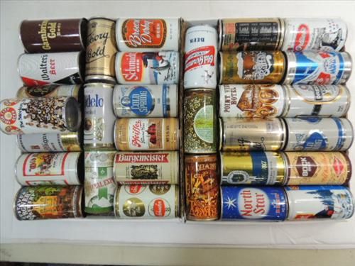 LOT 31 VINTAGE BEER CANS: FLAT TOP, PULL TAB: HEILEMAN'S, COLD SPRING, SCHMIDT, BROWN DERBY, WALTER'S, BOCK, NORTH STAR, ORTLIEB'S, OLD VIENNA, SCHMIDT AND MORE. AS SHOWN. VIEW PICTURE FOR DETAIL.