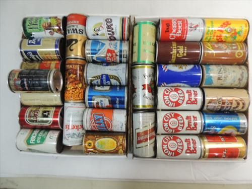 LOT 31 VINTAGE BEER CANS: PULL TAB: ALPS BRAU, DUKE, FALSTAFF, FISCHER'S, LABATT'S, BUSCH BAVARIAN, OTTO'S, CHERRY BEER, IRON CITY, STEFEL AND MORE. AS SHOWN. VIEW PICTURE FOR DETAIL.