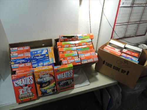 LOT 32 SPORT COVERS FOR CEREAL BOXES (WHEATIES, CORN FLAKES): BASEBALL, NASCAR AND BASKETBALL. AS SHOWN. VIEW PICTURE FOR DETAIL.