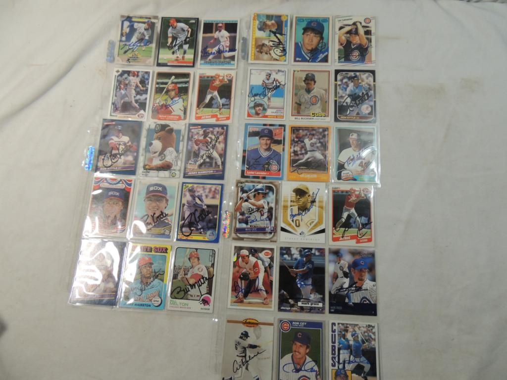 ASSORTED MIXED MAKERS AND DATES. NO COA AUTOGRAPHED BASEBALL CARDS. TRADING CARDS. GOOD CONDITION. BINDER SHEET. SPORTS MEMORABILIA. AS SHOWN. SEE PHOTO FOR MORE DETAILS.