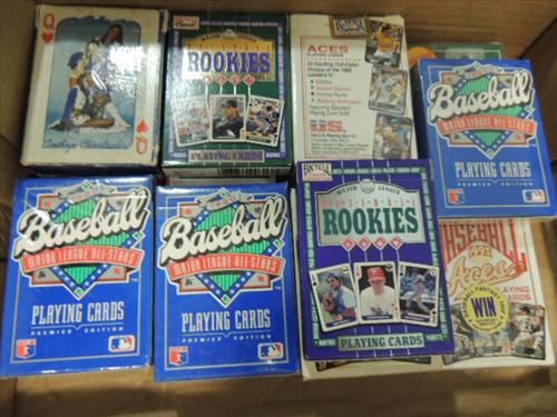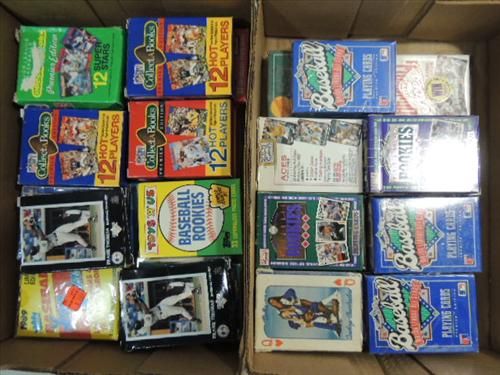 LOT 34 FOOTBALL & BASEBALL PLAYING CARD DECKS & MINI PACK TRADING CARDS. HOT PLAYERS, ROOKIES, SUPER STARS, RYAN, THOMAS, FOOTBALL & BASEBALL PLAYING CARD DECKS: 2 DALLAS COWBOY CHEERLEADERS, ROOKIES, ACES AND MORE. AS SHOWN. VIEW PICTURE FOR DETAIL.