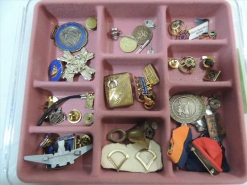 LOT 34 VINTAGE AWARD RIBBONS, LAPEL PINS, COINS &