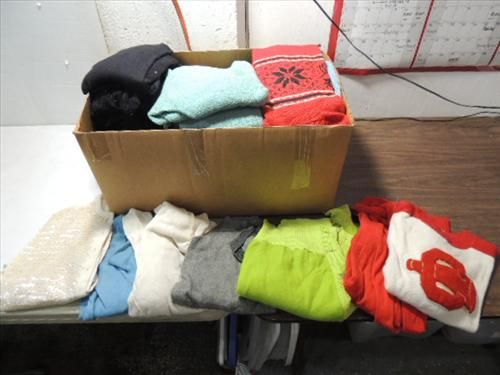 LOT 34 VINTAGE LADYS SWEATERS VARIOUS STYLE & COLORS. PULL OVER & BUTTON DOWN. AS SHOWN. VIEW PICTURE FOR DETAIL.