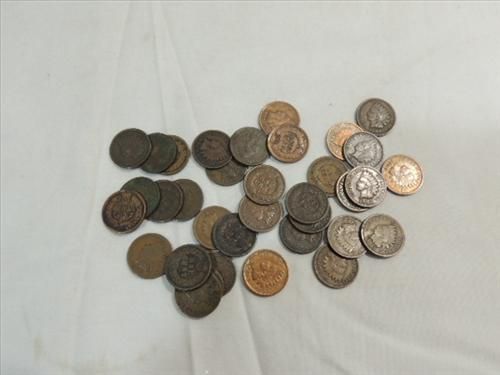 LOT 35 CIRCULATED MIX DATE INDIAN HEAD PENNIES. AS SHOWN. VIEW PICTURE FOR DETAIL.
