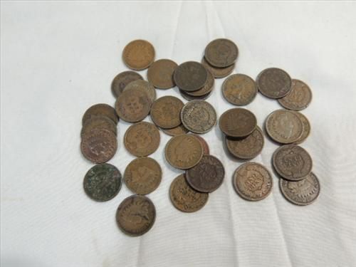 LOT 35 US COINS MIX DATE CIRCULATED INDIAN HEAD PENNIES. AS SHOWN. VIEW PICTURE FOR DETAIL.