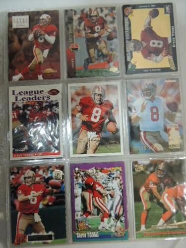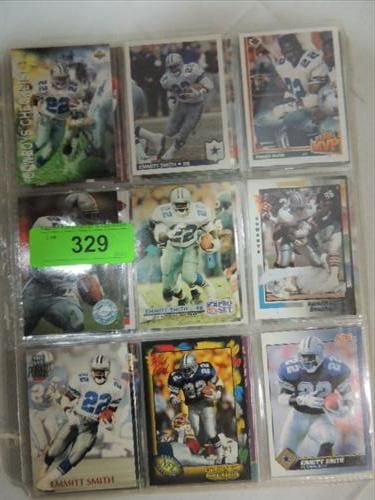 LOT 36 (9 EA PLAYER) FOOTBALL STAR CARDS: JOE MONTANA, EMMITT SMITH, STEVE YOUNG & BARRY SANDERS. AS SHOWN. VIEW PICTURE FOR DETAIL.