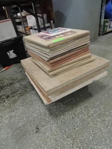 LOT 39 (11) 18X18 & (18) 12X12 ROCK & TERA COTTA TILES. AS SHOWN. VIEW PICTURE FOR DETAIL.