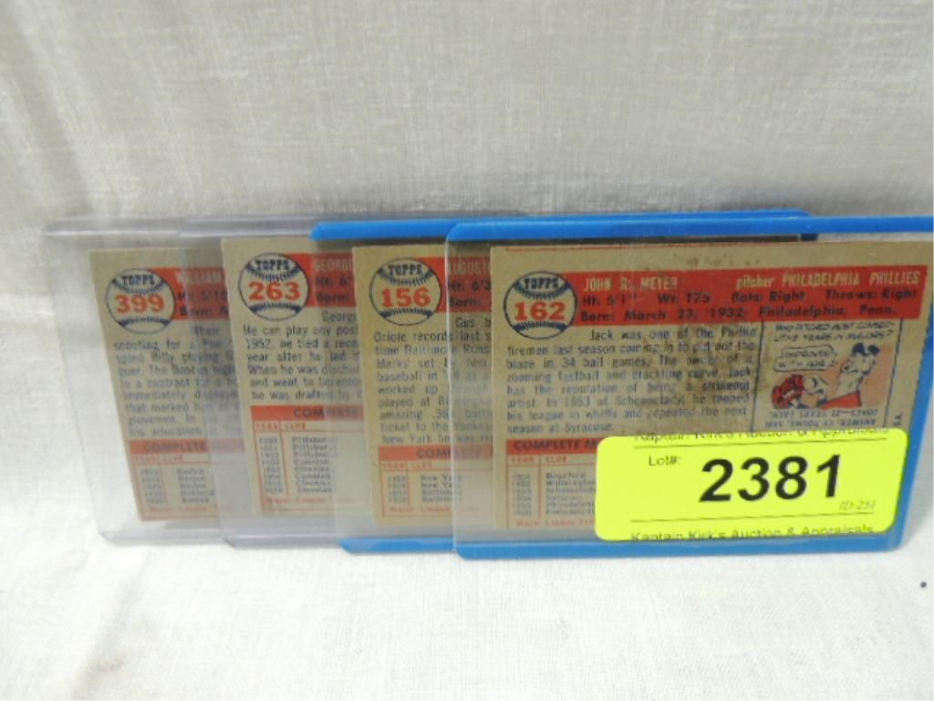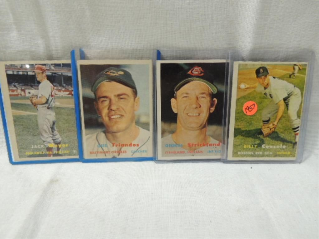 LOT 4 1957 TOPPS BASEBALL PLAYERS CARDS. BILLY CONSOLO GEORGE STICKLAND, GUS TRIANDOS, JACK MEYER