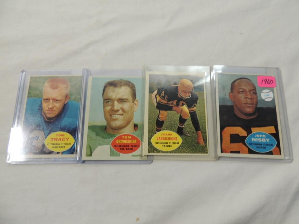 JOHN NISBY, FRANK VARRICHIONE, TOM BROOKSHIER, TOM TRACY FOOTBALL PLAYER CARDS. TRADING CARDS. COLLECTIBLE. FOOTBALL MEMORABILIA. GOOD CONDITION AS SHOWN. SEE PHOTO FOR MORE DETAILS.