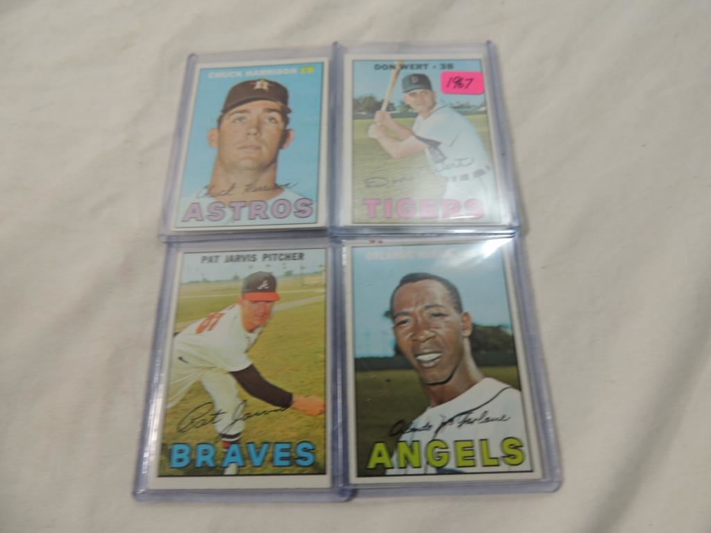 DON WERT, CHUCK HARRISON, ORLANDO MCFARLANE, PAT JARVIS BASEBALL PLAYER CARDS. TRADING CARDS. COLLECTIBLE. BASEBALL MEMORABILIA. GOOD CONDITION AS SHOWN. SEE PHOTO FOR MORE DETAILS.