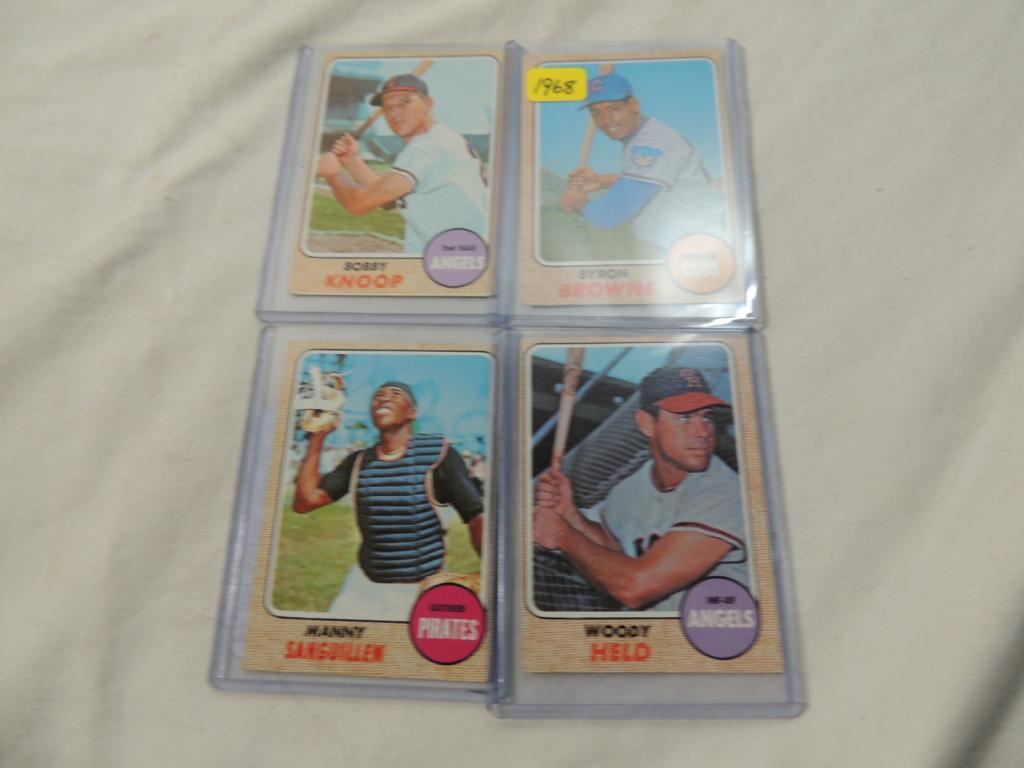 BYRON BROWNE, BOBBY KNOOP, WOODY HELD, MANNY SANGUILLEN BASEBALL PLAYER CARDS. TRADING CARDS. COLLECTIBLE. BASEBALL MEMORABILIA. GOOD CONDITION AS SHOWN. SEE PHOTO FOR MORE DETAILS.