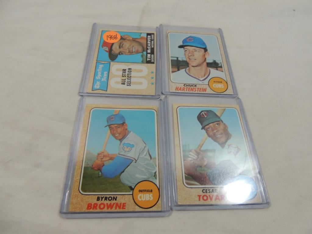 TIM MCCARVER, CHUCK HARTENSTEIN, BYRON BROWNE, CESAR TOVAR BASEBALL PLAYER CARDS, TRADING CARDS, COLLECTIBLE, BASEBALL MEMORABILIA GOOD CONDITION, AS SHOWN SEE PHOTO FOR MORE DETAILS