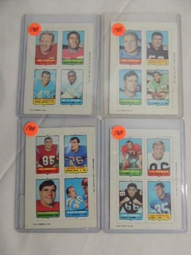 LOT 4 1969 TOPPS STICK BACK FOOTBALL PLAYER STAMPS / CARDS. 4 PER CARD. AS SHOWN. VIEW PICTURE FOR DETAIL.