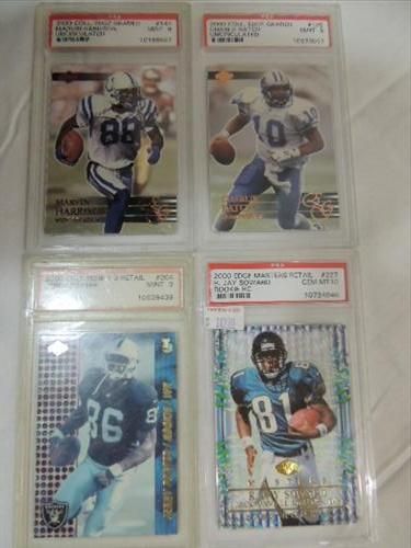 LOT 4 2000 COLLECTOR EDGE GRADED FOOTBALL CARDS: #147, 125, 227 & 204. AS SHOWN. VIEW PICTURE FOR DETAIL.