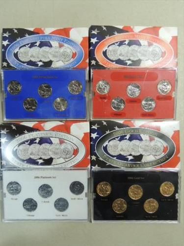 LOT 4 2006 STATE QUARTER COLLECTOR SETS: DENVER, PHILADELPHIA, PLATINUM, GOLD. AS SHOWN. VIEW PICTURE FOR DETAIL.