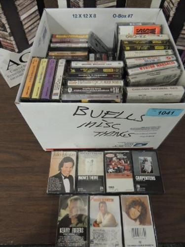 LOT 4 (3) 100 CASSETTE SPINNER HOLDER & 100+ 1970S CASSETTES ASSORTED MUSIC STYLES. AS SHOWN. VIEW PICTURE FOR DETAIL.