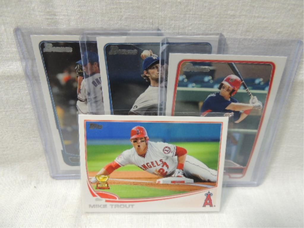LOT 4 (3) 2012 BOWMAN #BP10, 209,151 & 1 2013 #27 TOPPS BASEBALL CARD. AS SHOWN. VIEW PICTURE FOR DETAIL.