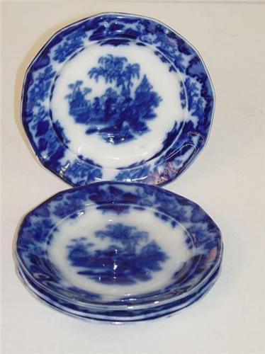 LOT (4) 7 1/4" SCINDE FLOW BLUE PLATES BY ALCOCK - CRAZING & WEAR;
