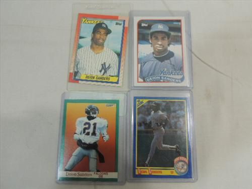 LOT 4 1990 ALL DEION SANDERS (3) BASEBALL, 1 FOOTBALL CARDS. AS SHOWN. VIEW PICTURE FOR DETAIL.