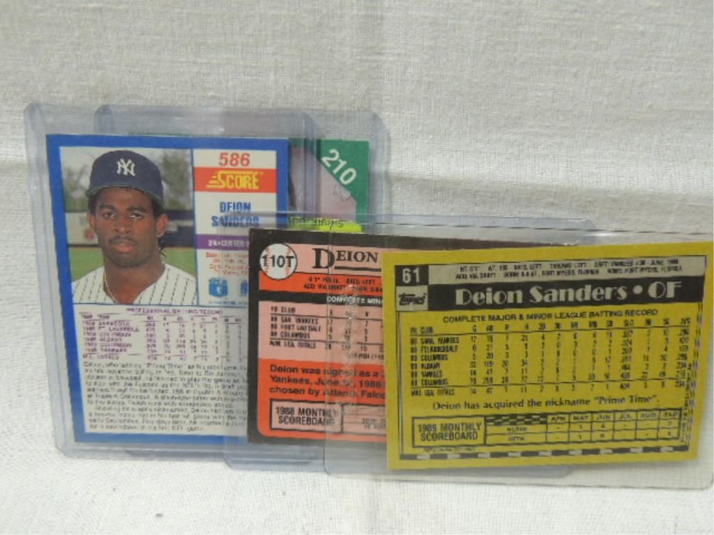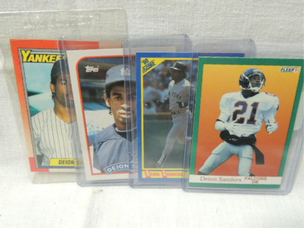 LOT 4 1990 ALL DEION SANDERS (3) BASEBALL, 1 FOOTBALL CARDS. AS SHOWN. VIEW PICTURE FOR DETAIL.