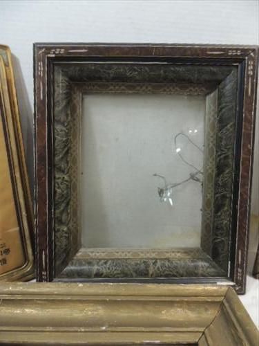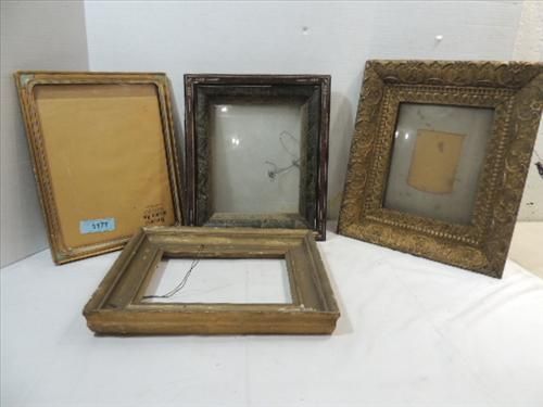 LOT 4 ANTIQUE PICTURE FRAMES APPROX 12X14. 1 ART DECO STYLE THE REST VICTORIAN STYLE. AS SHOWN. VIEW PICTURE FOR DETAIL.