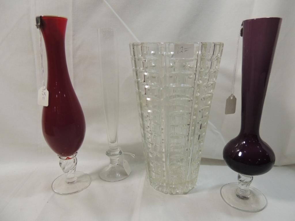 LARGE THICK GLASS CUT VASE SMALL SINGLE FLOWER CASES. AS SHOWN. SEE PHOTO FOR MORE DETAILS.