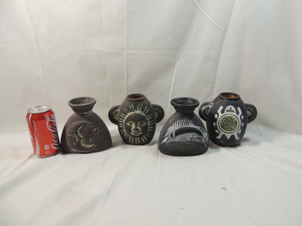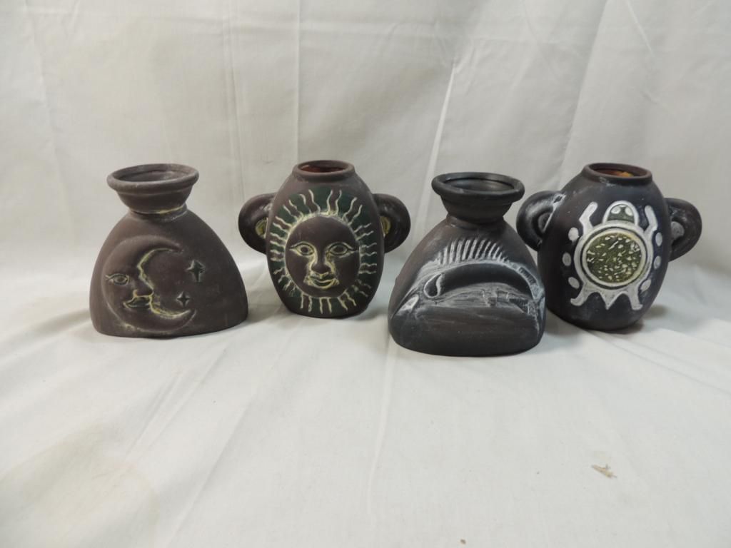 FOUR DIFFERENT SMALL TERRACOTTA. POTS. AS SHOWN. SEE PHOTO FOR MORE DETAILS