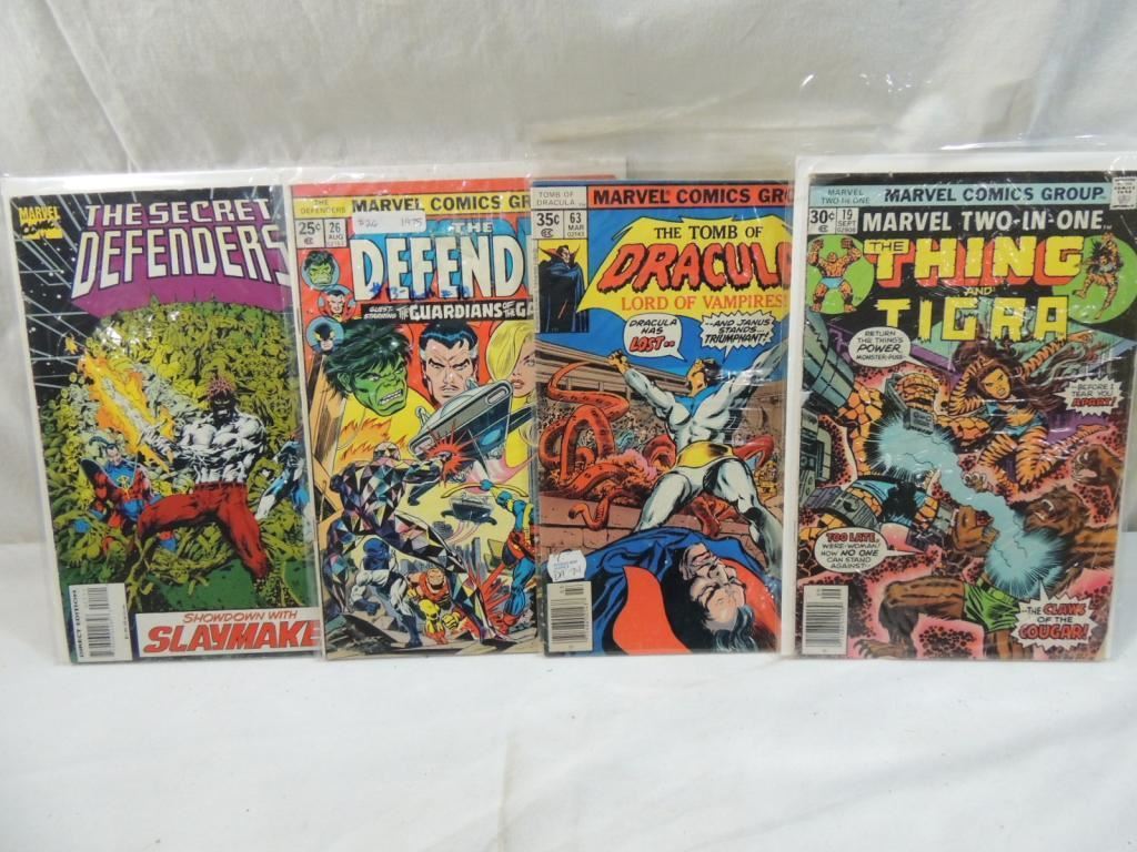THE THING & TIGRA, DRACULA, THE DEFENDER, SECRET DEFENDERS, VINTAGE COMICS. COLLECTIBLE. GOOD CONDTITION. PROTECTIVE PLASTIC AND CARDBOARD. AS SHOWN SEE PHOTO FOR MORE DETAILS.