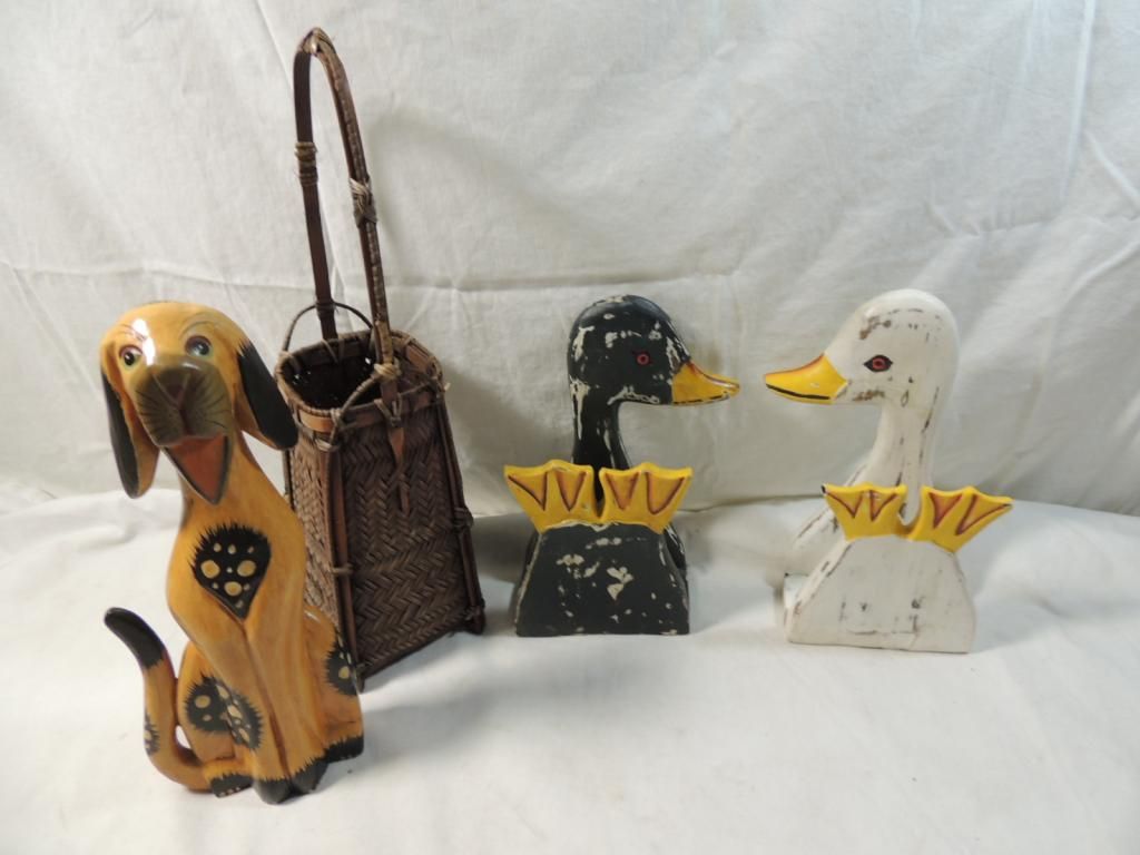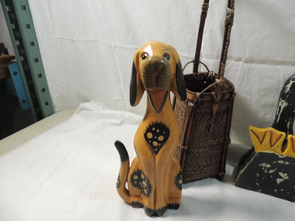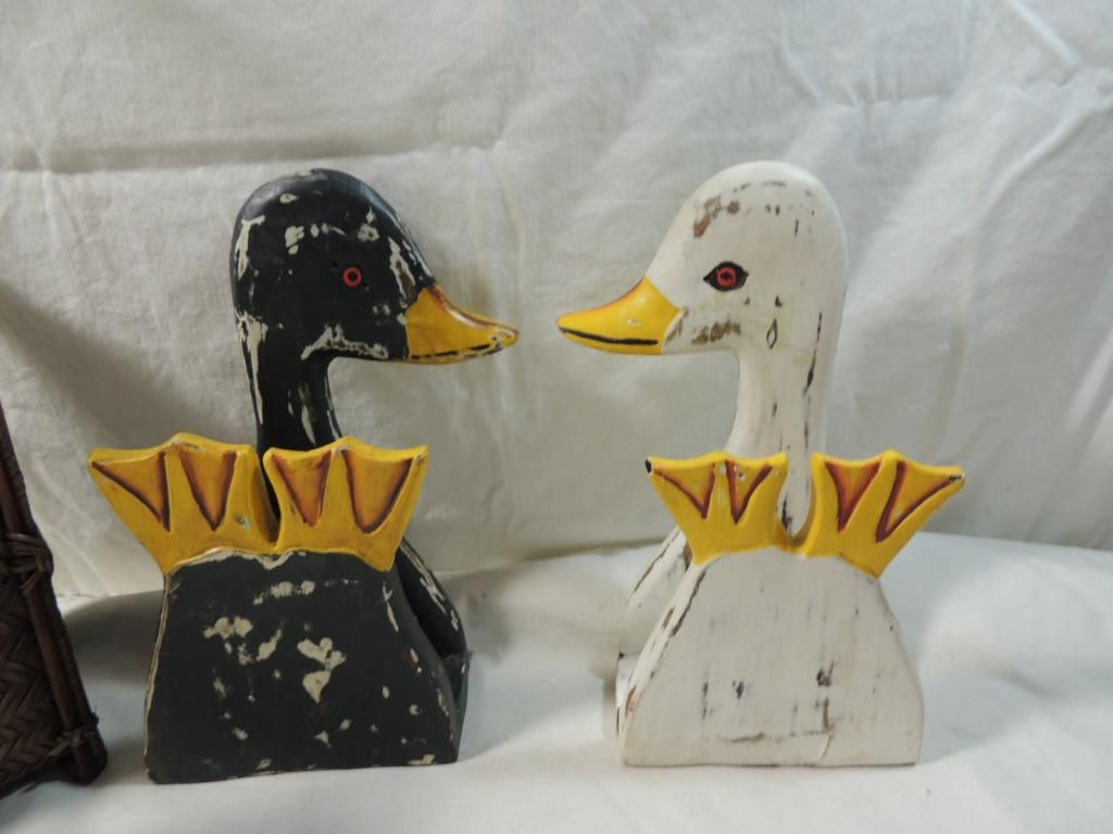 WICKER WINE BOTTLE BASKET GOOSE NAPKIN HOLDER, CAT FIGURE AS SHOWN SEE PHOTO FOR MORE DETAILS.
