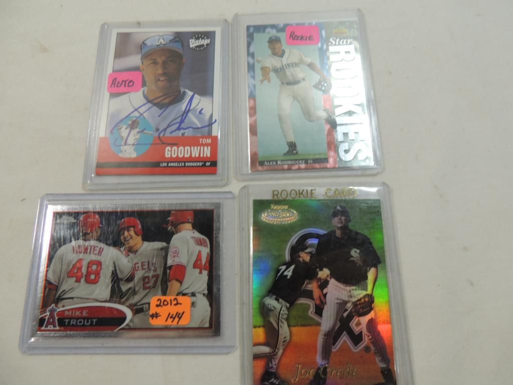 LOT 4 BASEBALL CARDS GOODWIN AUTO, RODRIGUEZ RC,TR