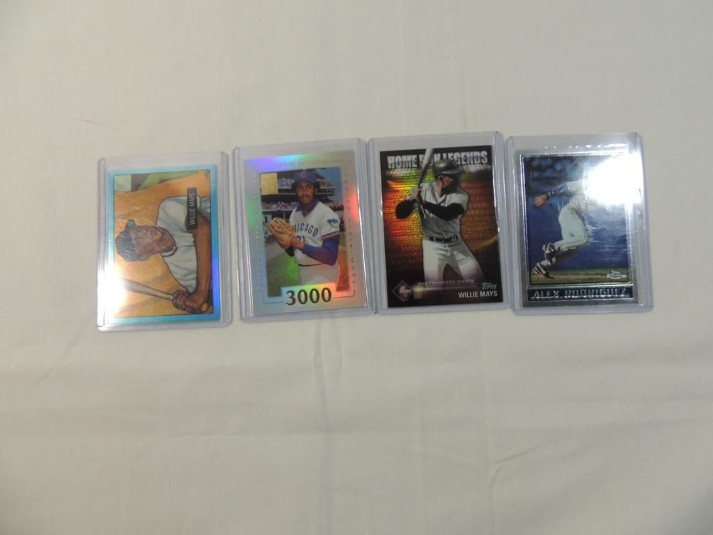 LOT 4 ASSORTED BASEBALL CARDS. ASSORTED TEAMS AND PLAYERS. SEE PICTURE FOR DETAILS. AS SHOWN.