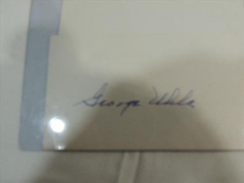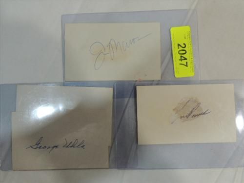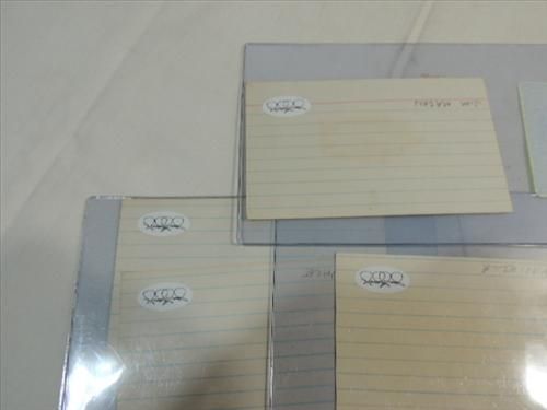 LOT 4 BASEBALL PLAYER AUTOGRAPHS: LOU PINIELLA, JIM MASON & (2) GEORGE UHLE. INCLUDES JAMES SPENCE STAMP OF APPROVAL ON BACK OF CARD. AS SHOWN. VIEW PICTURE FOR DETAIL.