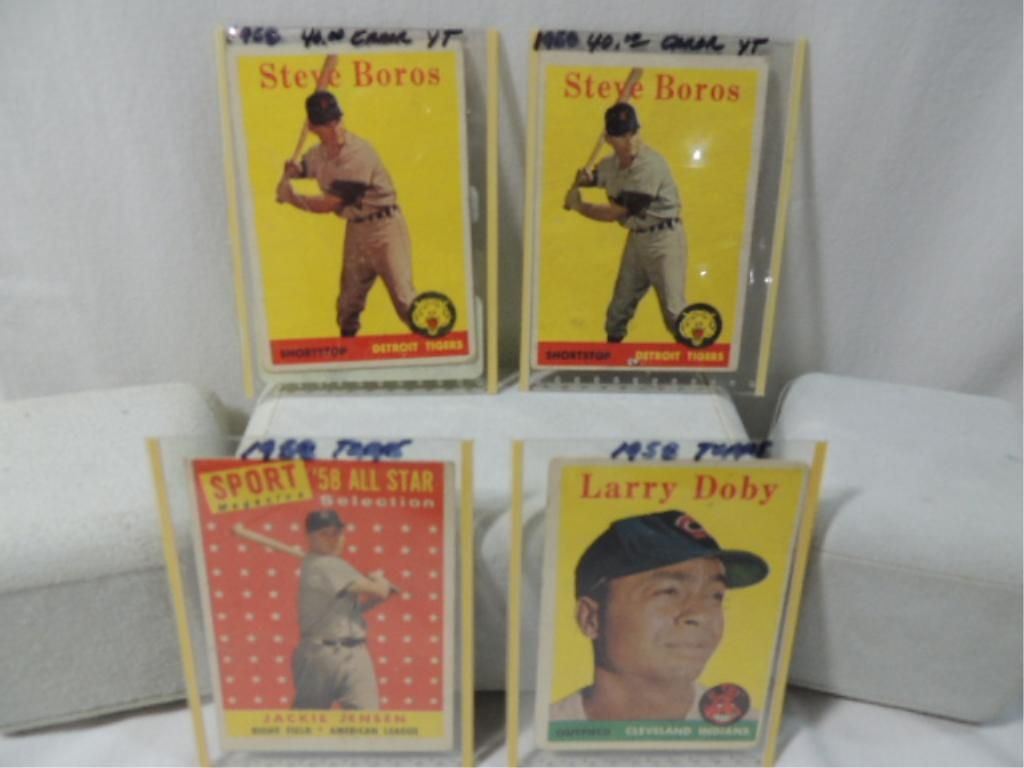 2 1958 TOPPS #81 STEVE BOROS, 1958 TOPPS #424 LARRY DOBY 1958 TOPPS #489 JACKIE JENSEN. AS SHOWN. SEE PICTURES FOR DETAILS.