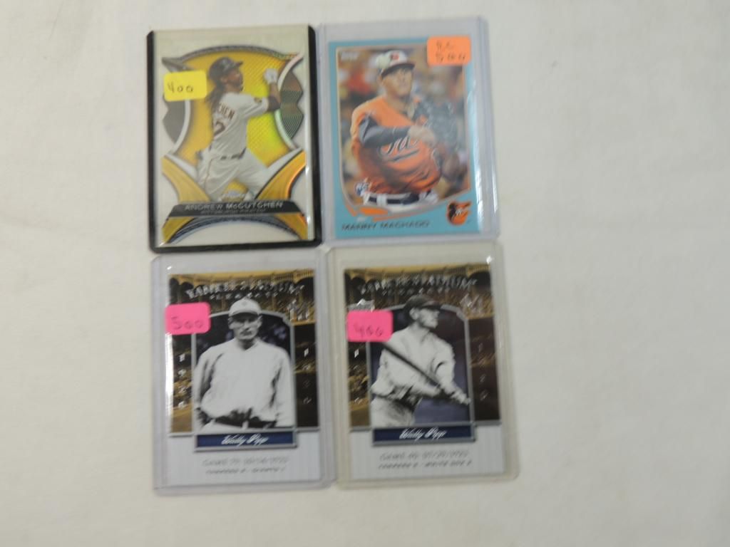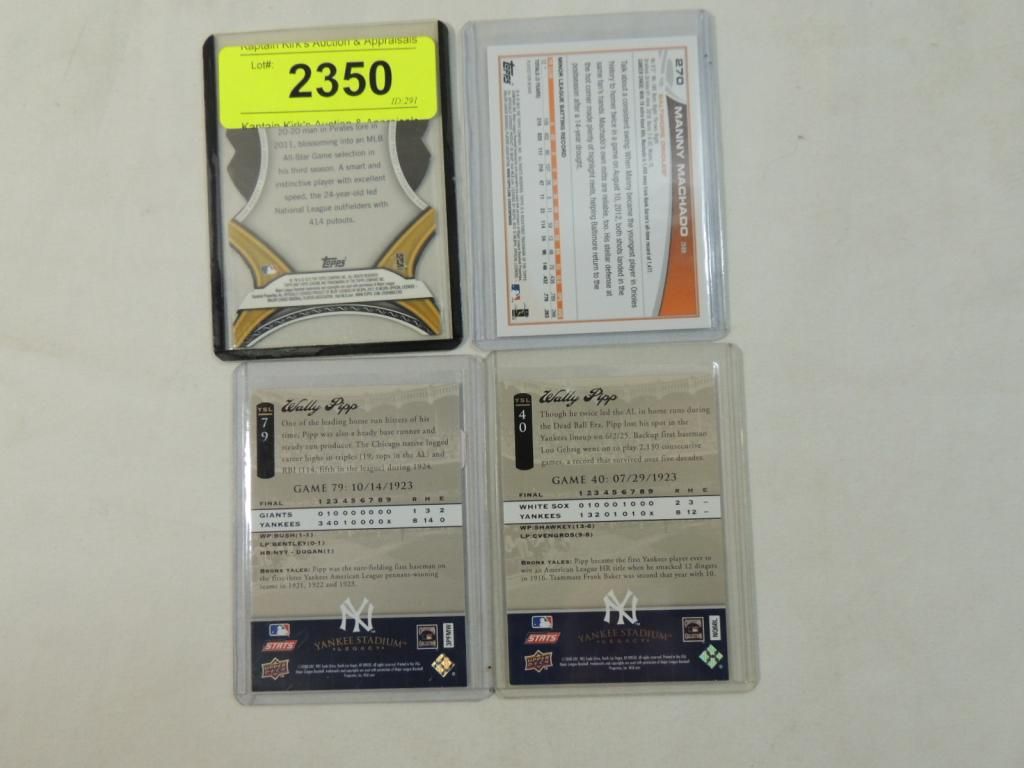 MANNY MACHADO ROOKIE CARD. 2 WALLY PIPP AND ANDREW MCCUTCHEN ASSORTED DATES DIE CUT. ROOKIE CARD. BASEBALL CARD. TRADING CARD. COLLECTIBLE. GREAT CONDITION. PROTECTIVE PLASTIC SLEEVE. BASEBALL MEMORABILIA. AS SHOWN SEE PHOTO FOR MORE DETAILS.