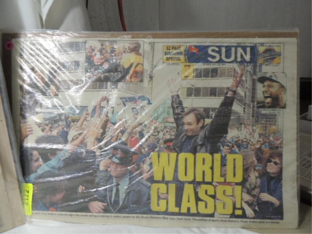 LOT 4 BOARDED SPORTS HEADLINERS NEWSPAPER ANNOUNCEMENTS FROM DIFFERENT CITYS ON SPORTS NEWS.