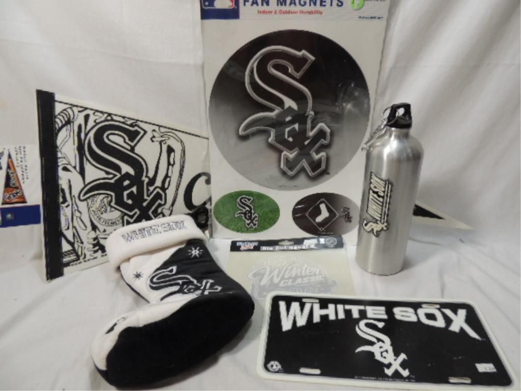 WHITE SOX PENNANET CHRISTMAS STOCKING, WATER BOTTLE, FAN MAGNETS. AS SHOWN SEE PHOTO FOR MORE DETAILS.