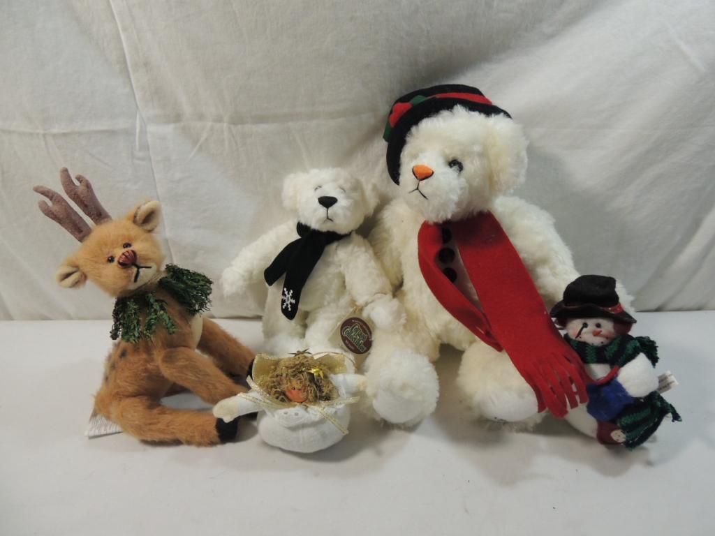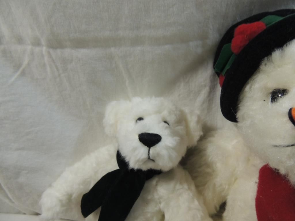 WINTER BEAR CHRISTMAS BEAR SNOWMAN TEDDY BEARS COTTAGE COLLECTIBLES BY GANZ ARTIST DESIGNED HAND CRAFTED KEEPSAKES DESIGNED FROM TEH HEART OF AN ARTIST AND STUFFED WITH OUR LOVE. GREAT CONDITION. AS SHOWN SEE PHOTO FOR MORE DETAILS.