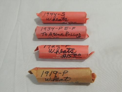 LOT 4 DATE ROLLS WHEAT PENNIES 1944S, 34, 20 & 19