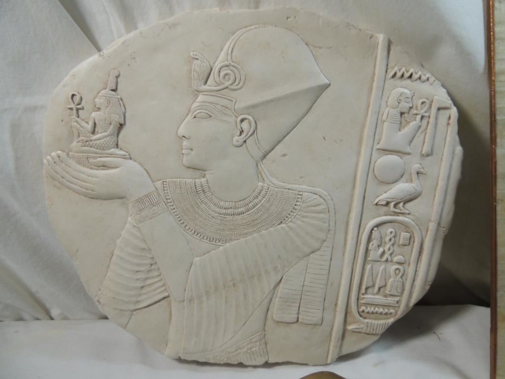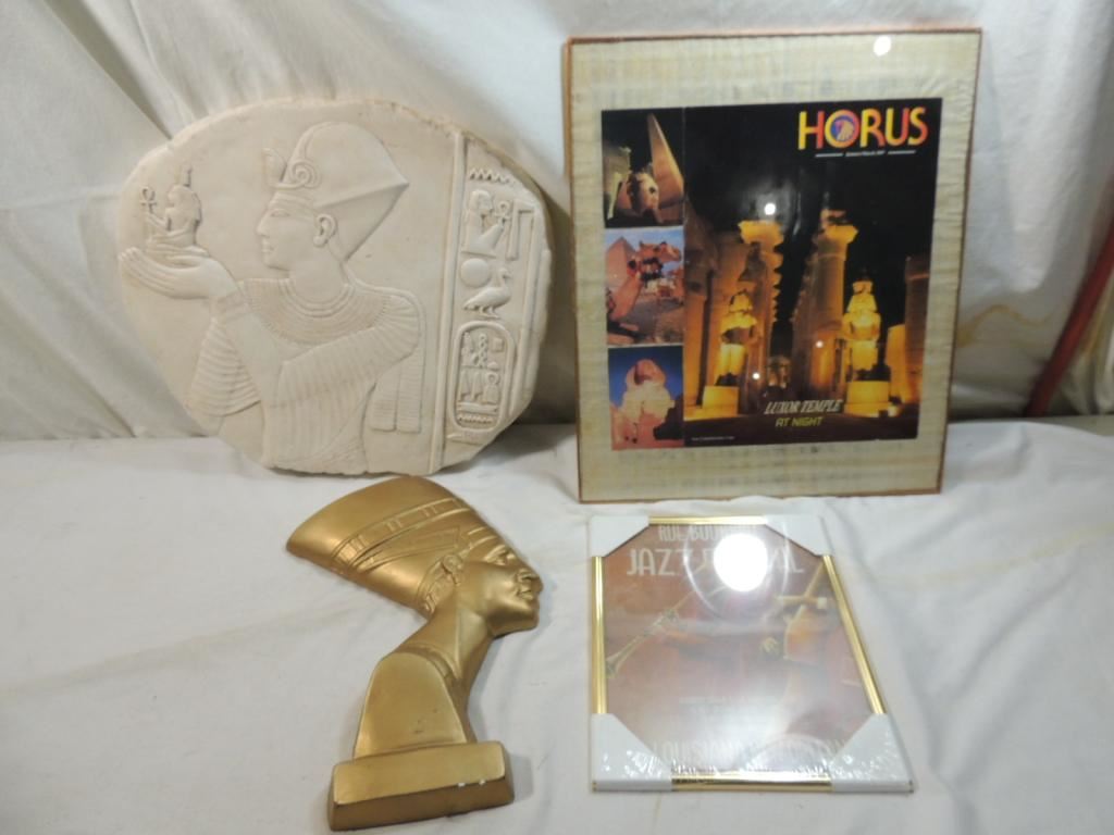 EGYPTIAN WALL ART CERAMIC WALL ART PRINT FRAMED GLASS EGYPTAIN TEMPLE PRINT AS SHOWN SEE PHOTO FOR MORE DETAILS.