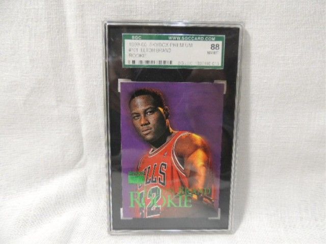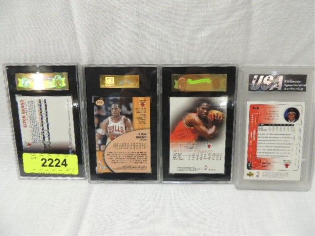 LOT 4 ELTON BRAND GRADED ROOKIE BASKETBALL CARDS: 1999-00 STADIUM CLUB #132, UPPER DECK #209, SKYBOX #101 & FLEER #203. AS SHOWN. VIEW PICTURE FOR DETAIL.