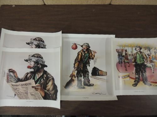 LOT 4 1994 EMMET KELLY JR HOBO CLOWN POSTERS AUTOGRAPH. ALL AUTOGRAPHED BY KELLY. NO COA. AS SHOWN. VIEW PICTURE FOR DETAIL. PLEASE BE ADVISED, AND INFORMED REGARDING SIGNATURES OR AUTOGRAPHS THAT WE SELL AT AUCTION: WE ARE NOT AUTHENTICATORS, AND WE DO NOT AUTHENTICATE, OR VALIDATE ANY AUTOGRAPHS OR SIGNATURES THAT WE OFFER AT AUCTION. SOME AUTOGRAPHS OR SIGNATURES MAY COME WITH AN AUTHENTICATION FROM ANY ONE OF LITERALLY HUNDREDS OF AUTHENTICATORS ACROSS THE COUNTRY, AND AROUND THE WORLD. WE DO NOT ENDORSE ANY AUTHENTICATOR, NOR DO WE GUARANTEE THAT ANY AUTOGRAPH OR SIGNATURE IS AUTHENTIC, OR THAT IT WILL PASS AUTHENTICATION BY ANY AUTHENTICATOR. ALL AUTOGRAPHS OR SIGNATURES ARE SOLD